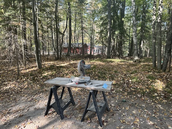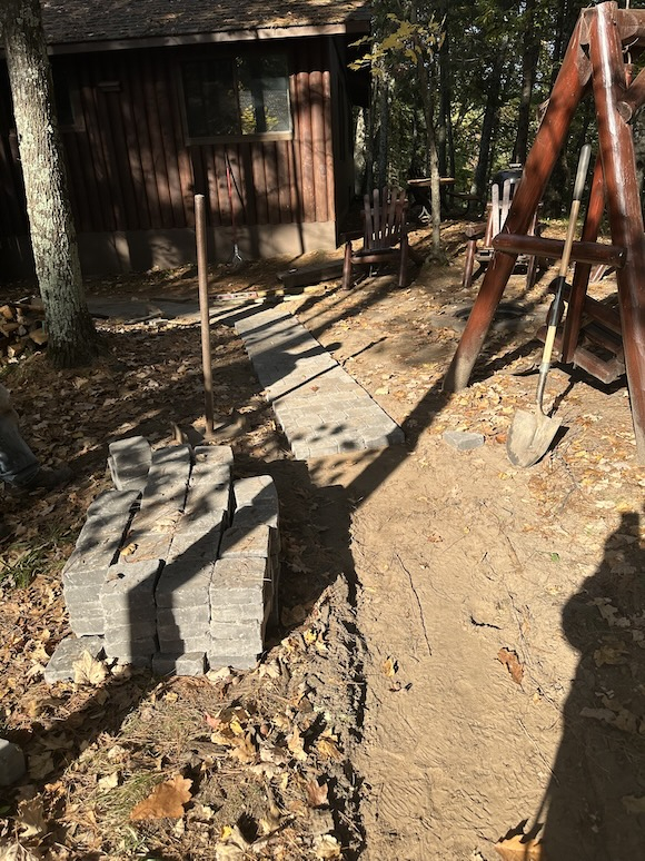Troy is practicing his corners with bricks. He is getting pretty good at it. Slowly we are replacing the old wood walk ways
