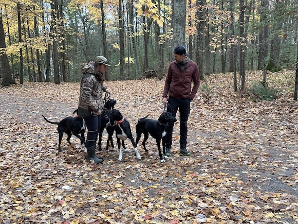 Having the top dogs in the world at the resort, it is interesting to see the difference between them and the winter huskies. For dry land they use crosses of German Short Hair, Great Danes, and Gray Hounds. These are 3 siblings and a friend.