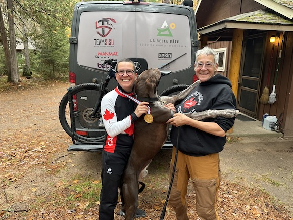We are having a great week hosting some of the American and Canadian World Dry Land Dog racers. The above pic is of the top dog and world champion over all age groups male and female in bike journing. One dog and one competitor and a really long race on bike with dog pulling and pedaling. Congrats to Canada. We had several other big winners I will post too.